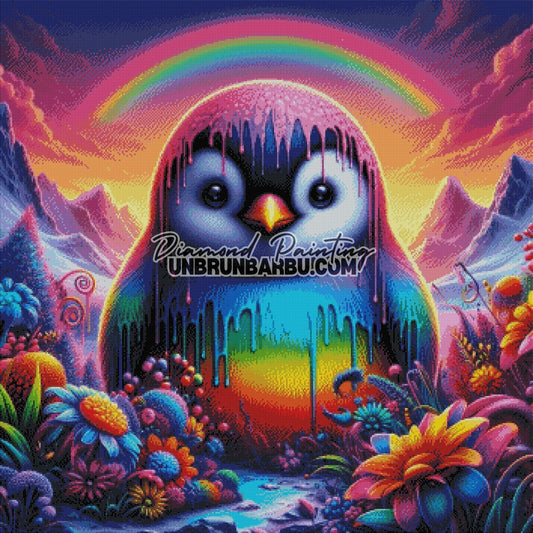 Arc-en-Couleurs, le Pingouin Magique (90cm x 90cm)