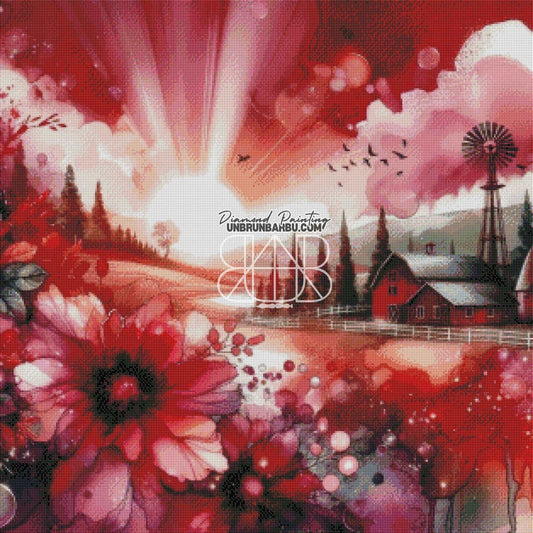 Aube Écarlate à la Ferme. (80cm x 80cm)