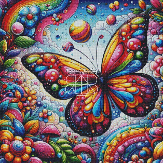 Ballet du Papillon dans un Jardin de Vitraux (60cm x 60cm)