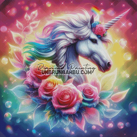 La Licorne des Roses Arc-en-Ciel (100cm x 100cm)
