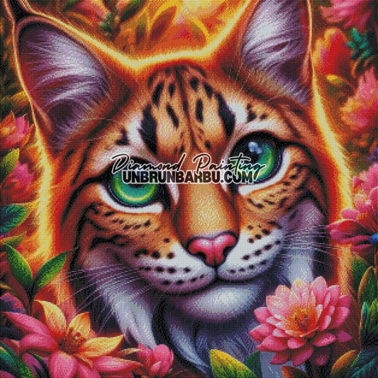 Lynx aux Fleurs d’Aurore (100cm x 100cm)