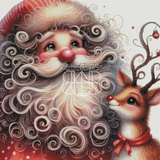 Père Noël et Rudolph. (80cm x 80cm)