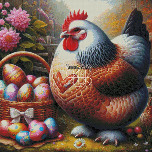 Poule de Pâques Majestueuse. (90cm x 90cm)
