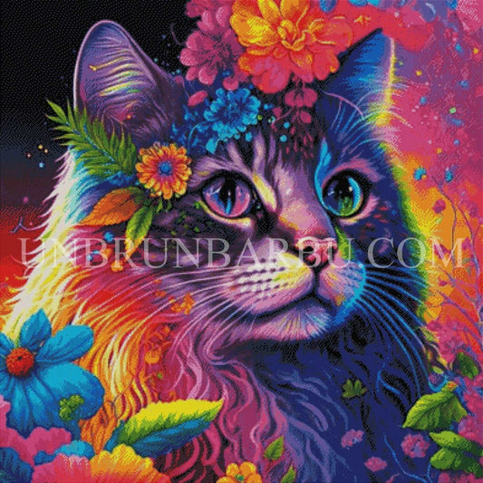 Chat Angora Floral. (100cm x 100cm).
