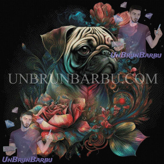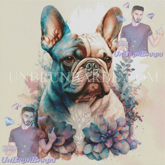 Éclat Floral : Joie Canine Bringée. (80cm x 80cm)