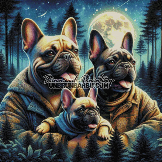 Famille Bouledogue Étoilée (100cm x 100cm)