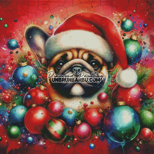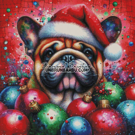 Bouledogue de Noël Couronné (90cm x 90cm)