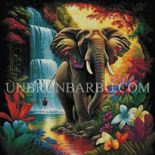 Majesté Éléphantesque au Cœur de la Cascade Étincelante. (80cm x 80cm)