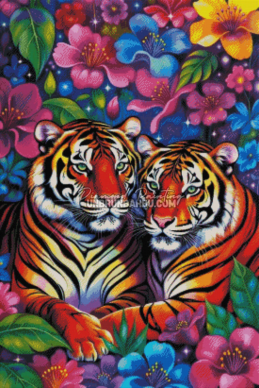 Diamond Painting - Duo de Tigres en Fleurs (70cm x 105cm)