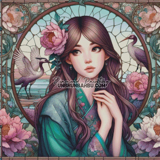 Élégance Asiatique au Cœur des Vagues (100cm x 100cm)