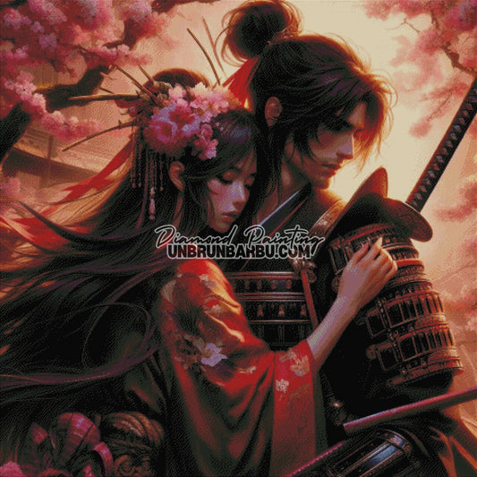 Sous les cerisiers en fleurs, un amour interdit (120cm x 120cm)