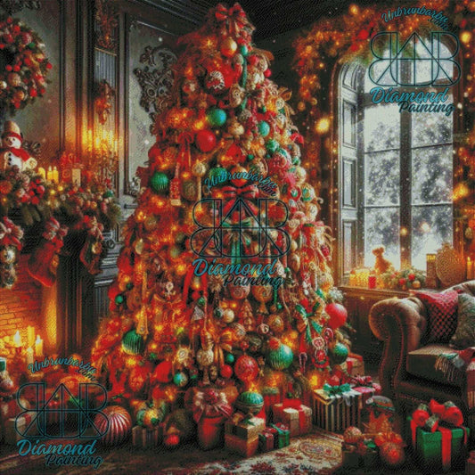 Féérie Royale Sapin Scintillant et Cheminée de Noël. (120cm x 120cm).