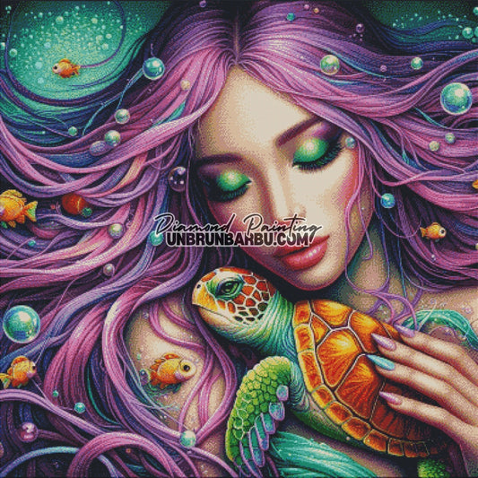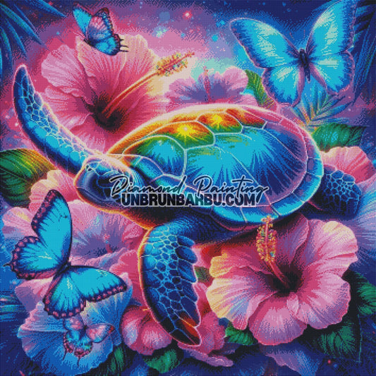 Tortue et Fleurs Magiques (90cm x 90cm)
