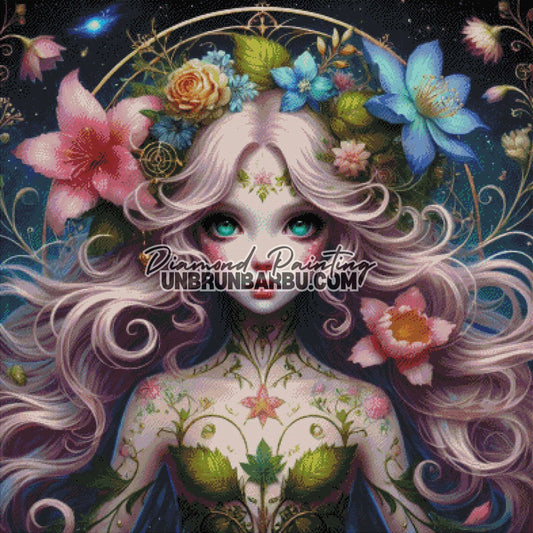 Déesse des Fleurs Étoilées (100cm x 100cm)
