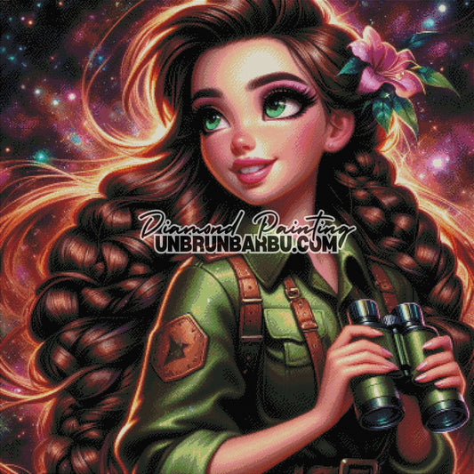 Princesse aux cheveux d'or et l'ours en peluche (80cm x 80cm)