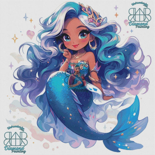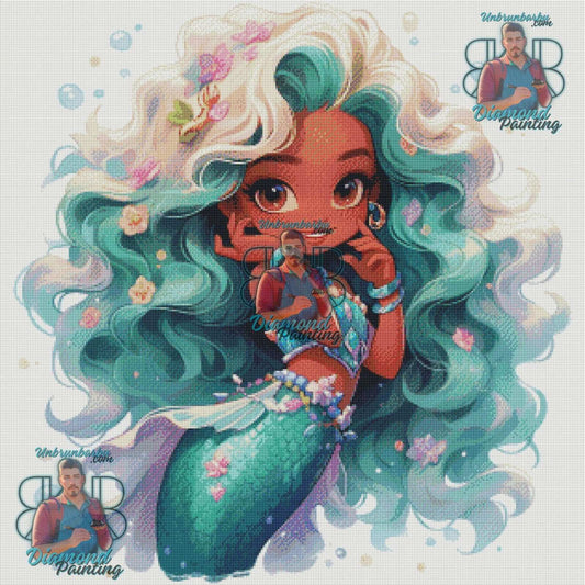 Voyage Aquatique, Sirène Anime, Douceur du Bleu Menthe. (80cm x 80cm).