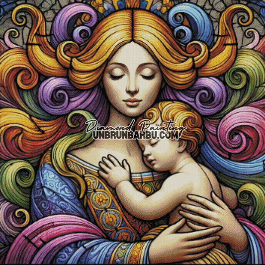 Etreinte éternelle dans un océan de couleurs (90cm x 90cm)