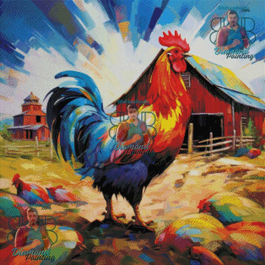 Éclat Matinal, Portrait Peint d’un Coq Majestueux. (80cm x 80cm).