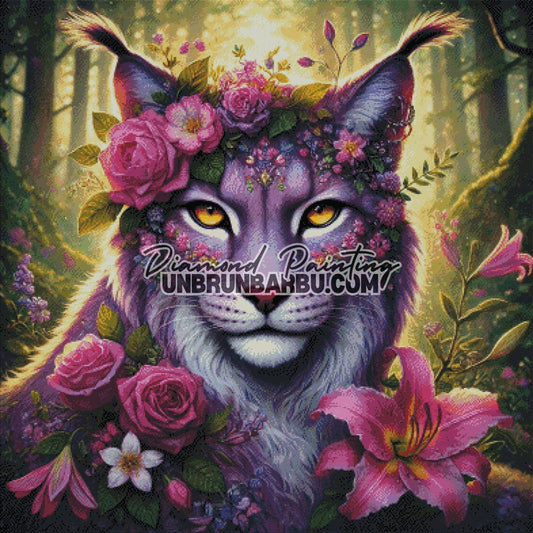 Lynx aux Fleurs d’Aurore (100cm x 100cm)
