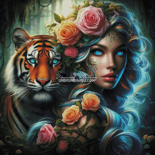 Gardienne du Tigre et des Roses (120cm x 120cm)