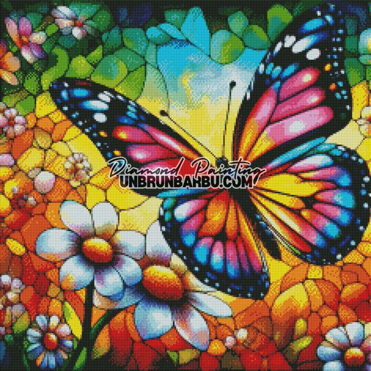 Ballet du Papillon dans un Jardin de Vitraux (60cm x 60cm)