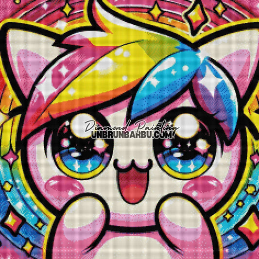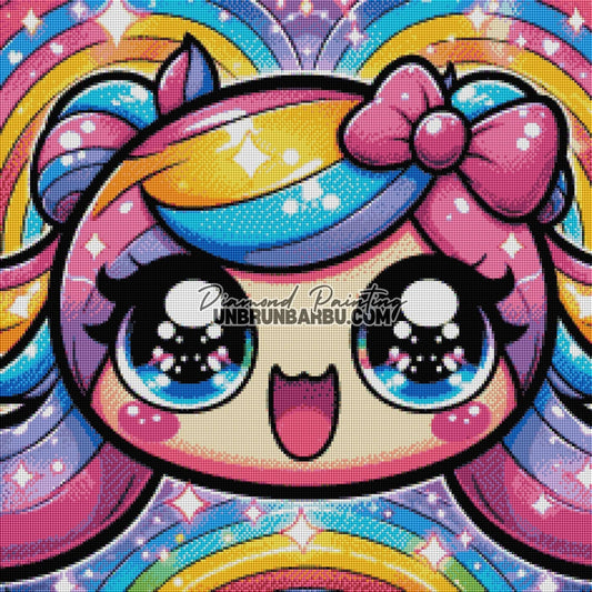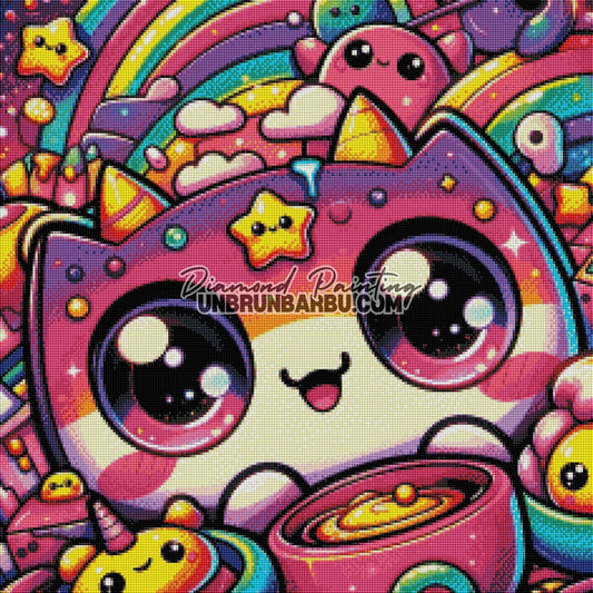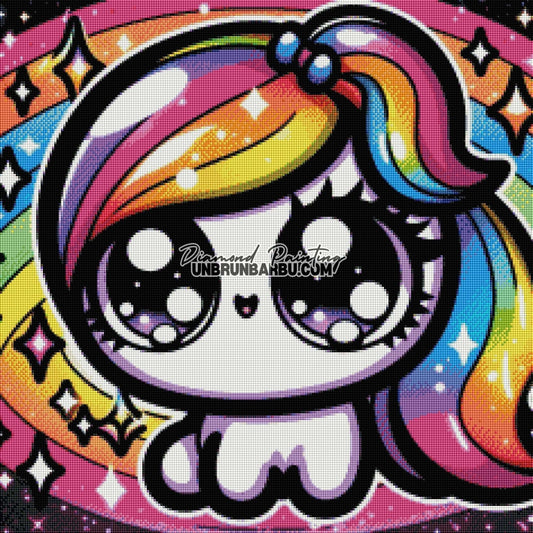 Licorne Kawaii aux Éclats Arc-en-Ciel (60cm x 60cm)