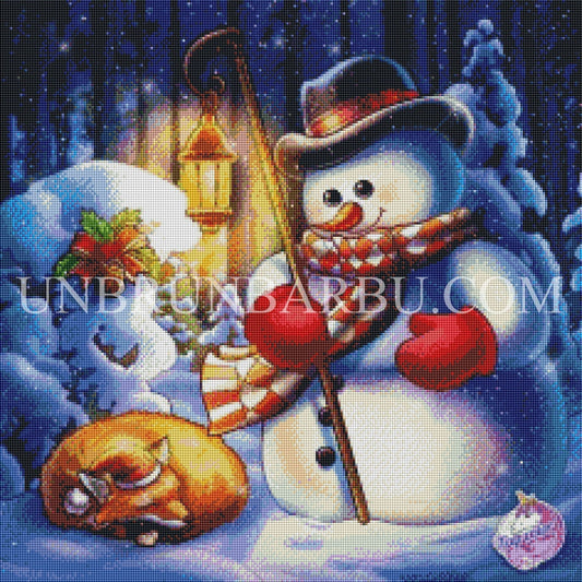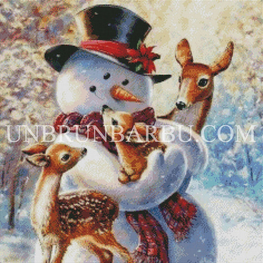 Le Bonhomme de Neige Gardien des Biches. (60cm x 60cm).