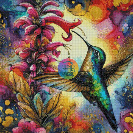 Colibri Plumes Iridescents. (80cm x 80cm).