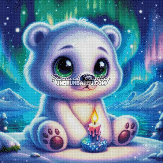 Petit Ours des Lumières Boréales (80cm x 80cm)