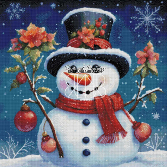 Bonhomme de Neige et Pommes de Pin. (80cm x 80cm)