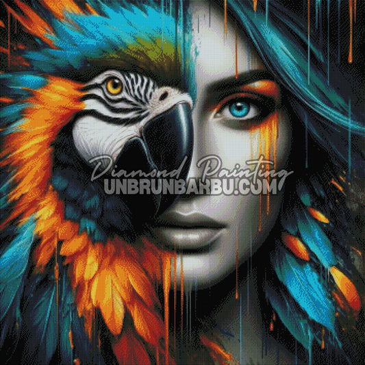 L'Âme Sauvage Femme et Perroquet (90cm x 90cm)
