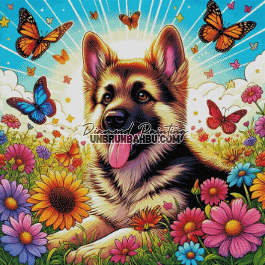 Berger Allemand au Jardin des Rêves (90cm x 90cm)