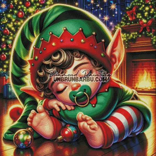 Bébé Lutin au Coin du Feu (90cm x 90cm)