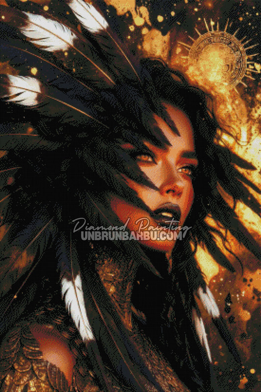 Diamond Painting - Amérindienne Guerrière aux Mille Plumes (80cm x 120cm)