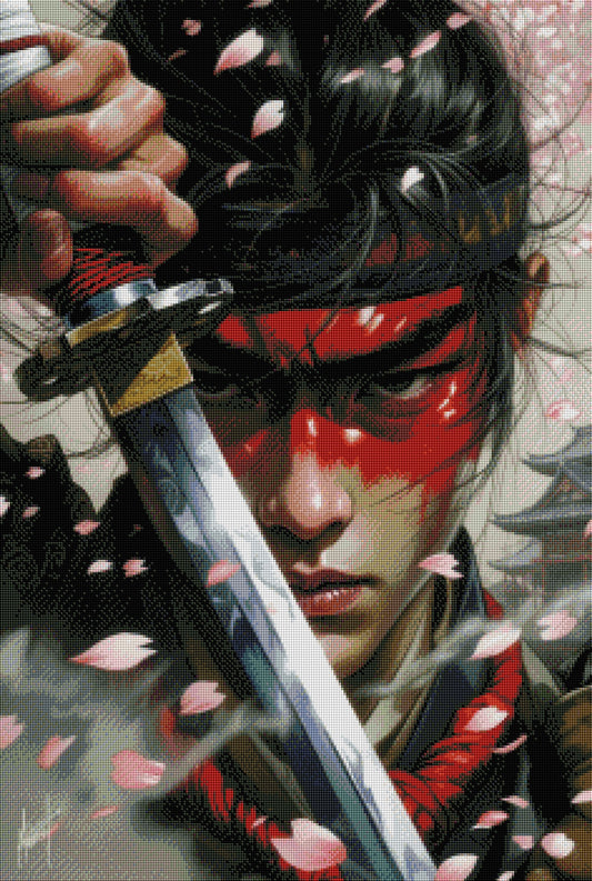 Diamond Painting - Samouraï Masqué aux Pétales de Cerisier (60cm x 90cm)