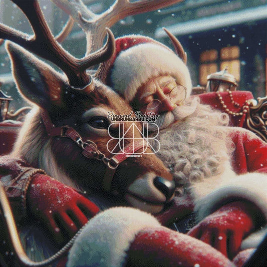 Papá Noel y sus renos, un abrazo mágico. (120 cm x 120 cm)