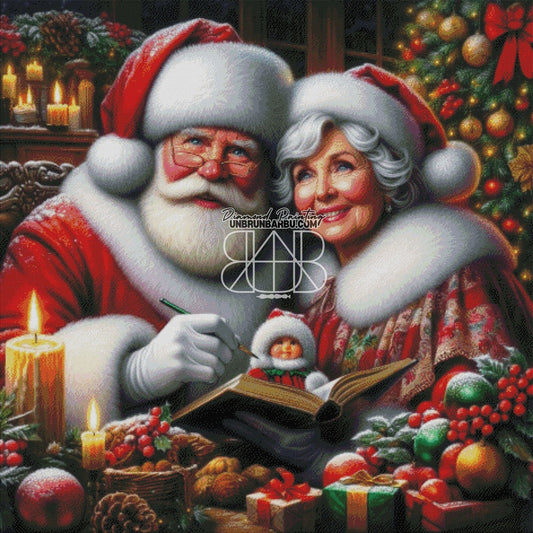 Madre Navidad y Papá Noel se preparan para las vacaciones. (120 cm x 120 cm)