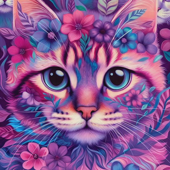 Diamond Painting - Chats Enchantés aux Fleurs Vibrantes (60cm x 90cm)