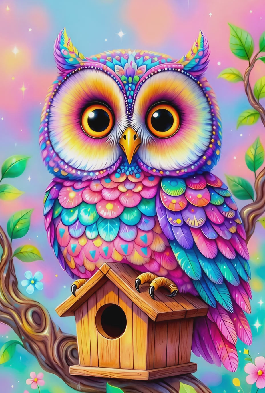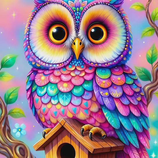 Diamond Painting - Chouette Arc-en-Ciel sur son Perchoir (60cm x 90cm)