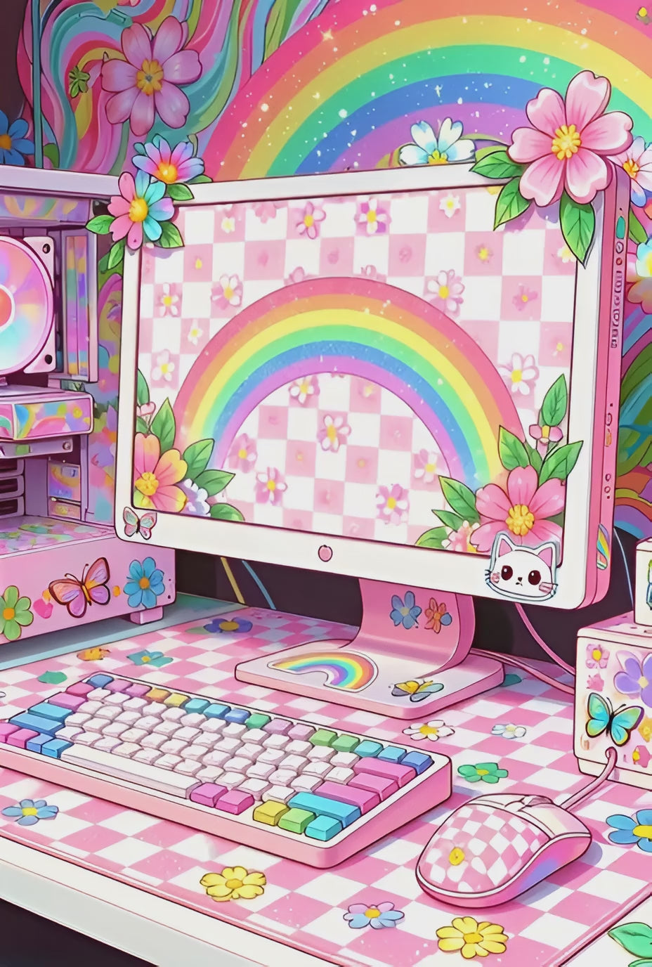Dehors, la pluie bat contre les vitres, mais ici, tout n'est que chaleur et lumière douce. C'est le refuge parfait pour un dimanche après-midi. Pas de compétition effrénée, pas de "Game Over" stressant. Sur cet écran entouré de fleurs, on ne sauve pas le monde avec des épées, on construit des villages paisibles et on cultive des potagers virtuels. Le clavier mécanique émet un cliquetis satisfaisant, comme le bruit de petites gouttes de pluie, tandis que l'écran affiche un arc-en-ciel permanent. C'est la station de jeu ultime pour ceux qui pensent que le jeu vidéo est avant tout une thérapie pour l'âme.