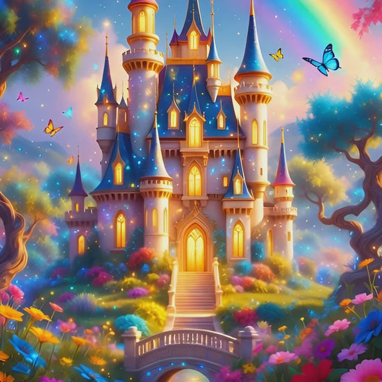 La légende raconte que ce château n'est pas habité par des rois ou des reines, mais par le Gardien des Couleurs. On dit que chaque matin, le Gardien peint le ciel. S'il est joyeux, il trace un arc-en-ciel éclatant au-dessus des tours ; s'il est pensif, il ajoute des nuages de coton.