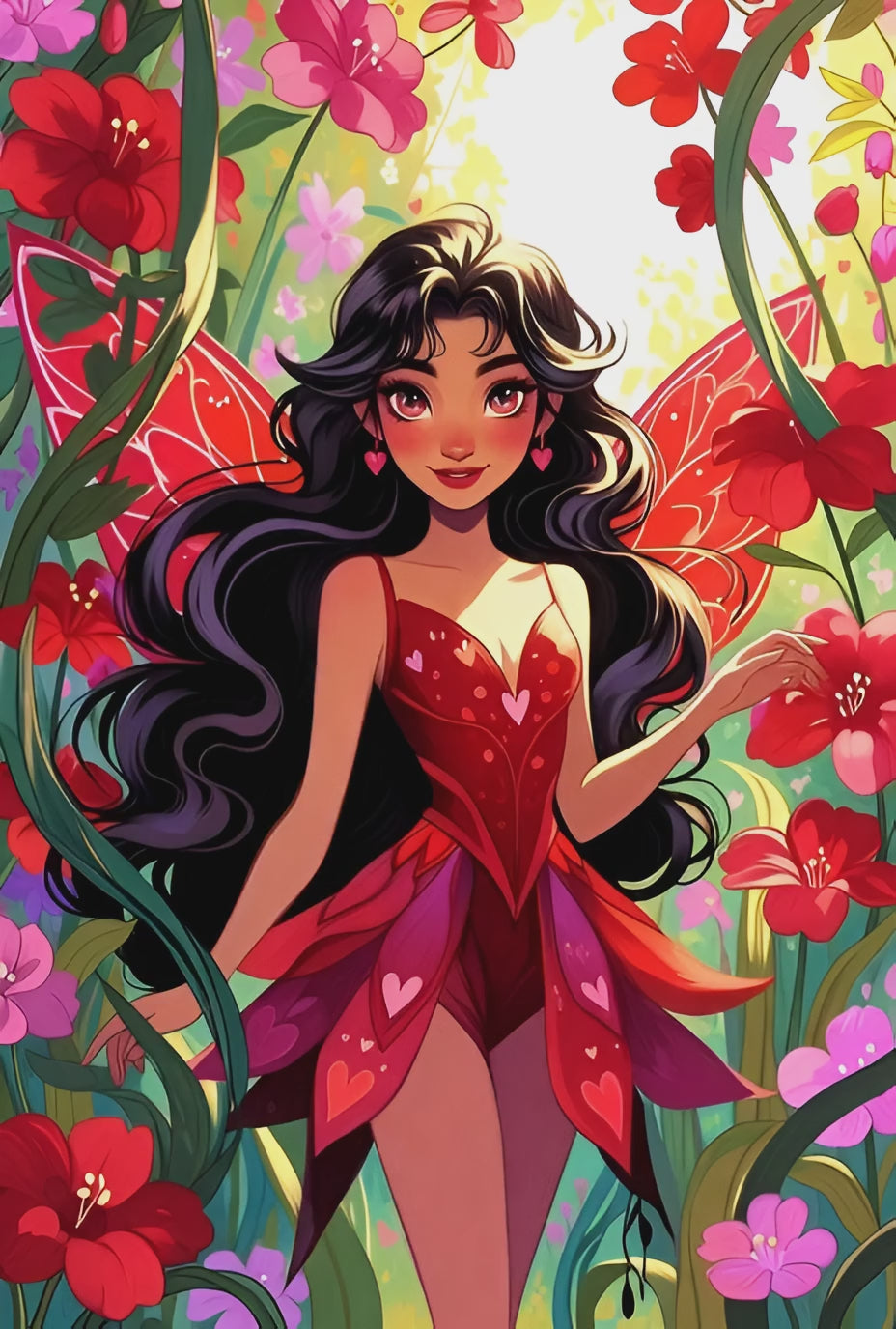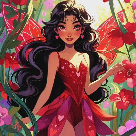 Contrairement aux autres fées qui s'occupent de la rosée ou du givre, Rubis a une mission bien particulière : elle veille à ce que l'amour ne disparaisse jamais du monde. Regardez sa robe : chaque petit cœur qui l'orne représente un vœu d'amitié ou d'amour prononcé quelque part sur Terre.