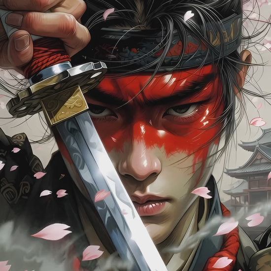 Diamond Painting - Samouraï Masqué aux Pétales de Cerisier (60cm x 90cm)