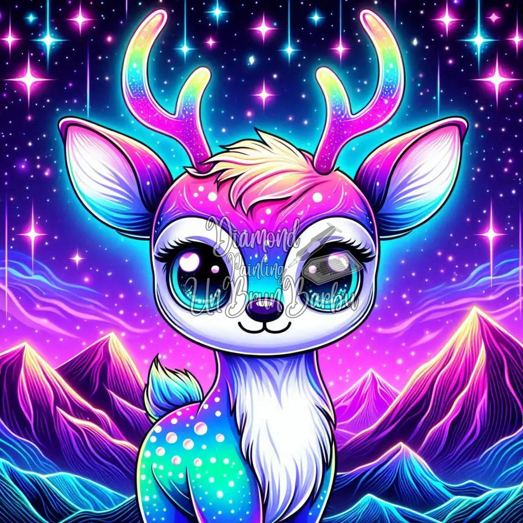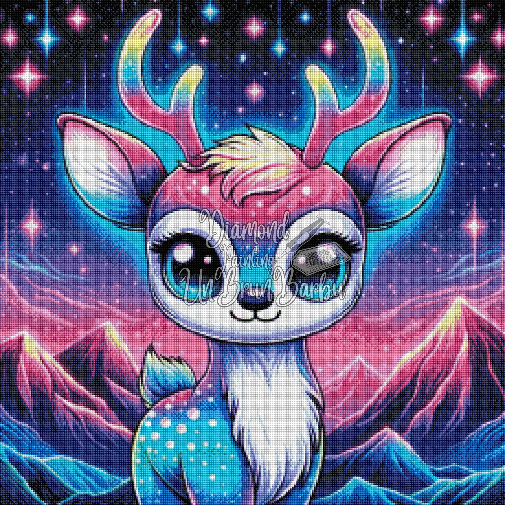 Dans les confins d'une galaxie où l'hiver est éternel et scintillant, vit une créature unique : le Faon Cosmique aux Bois Glacés.