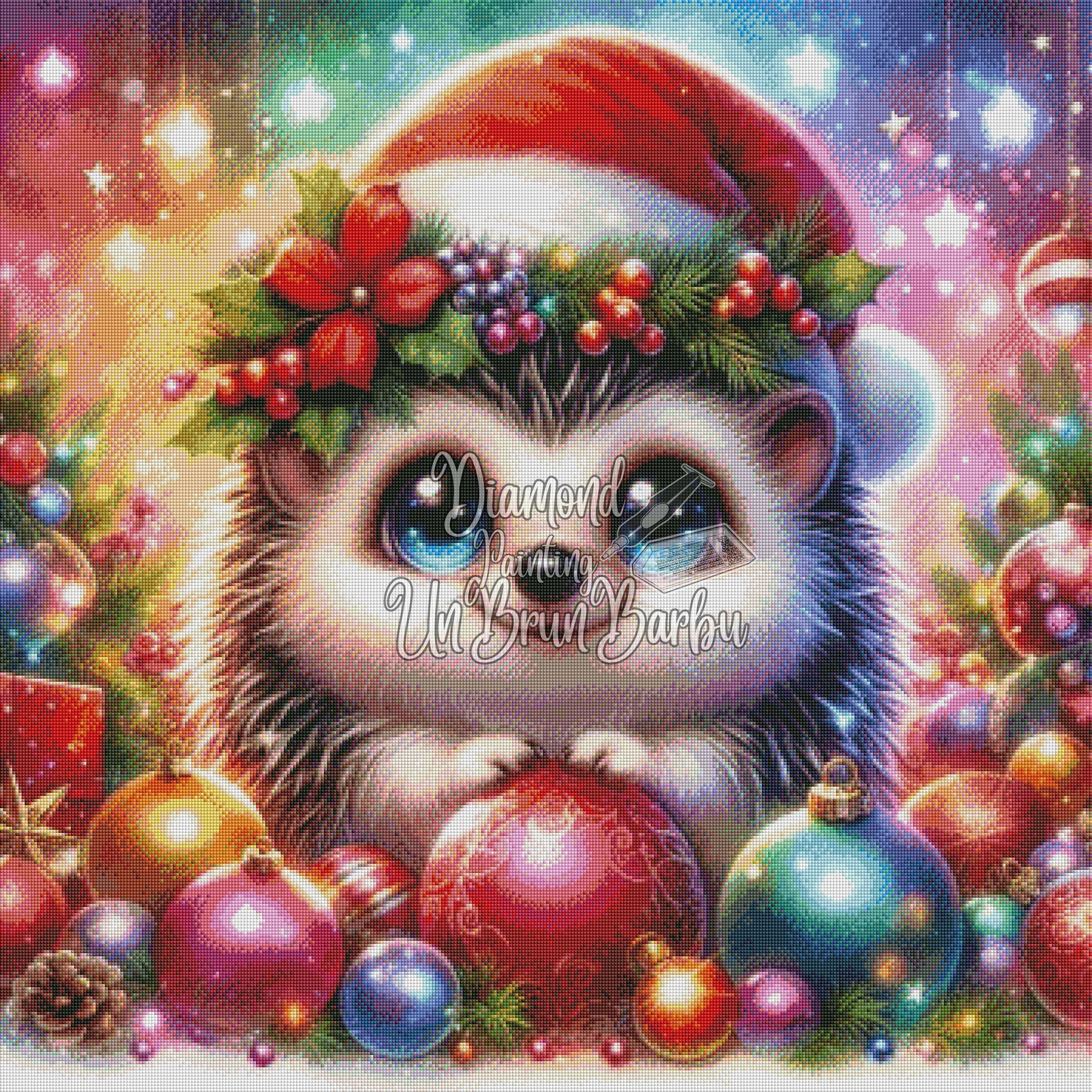 Préparez-vous à fondre de tendresse ! Ce petit hérisson a une mission très importante : il protège la plus belle décoration du sapin. Avec ses petites pattes, il serre précieusement une magnifique boule de Noël rouge aux motifs dorés, son véritable trésor de fête.