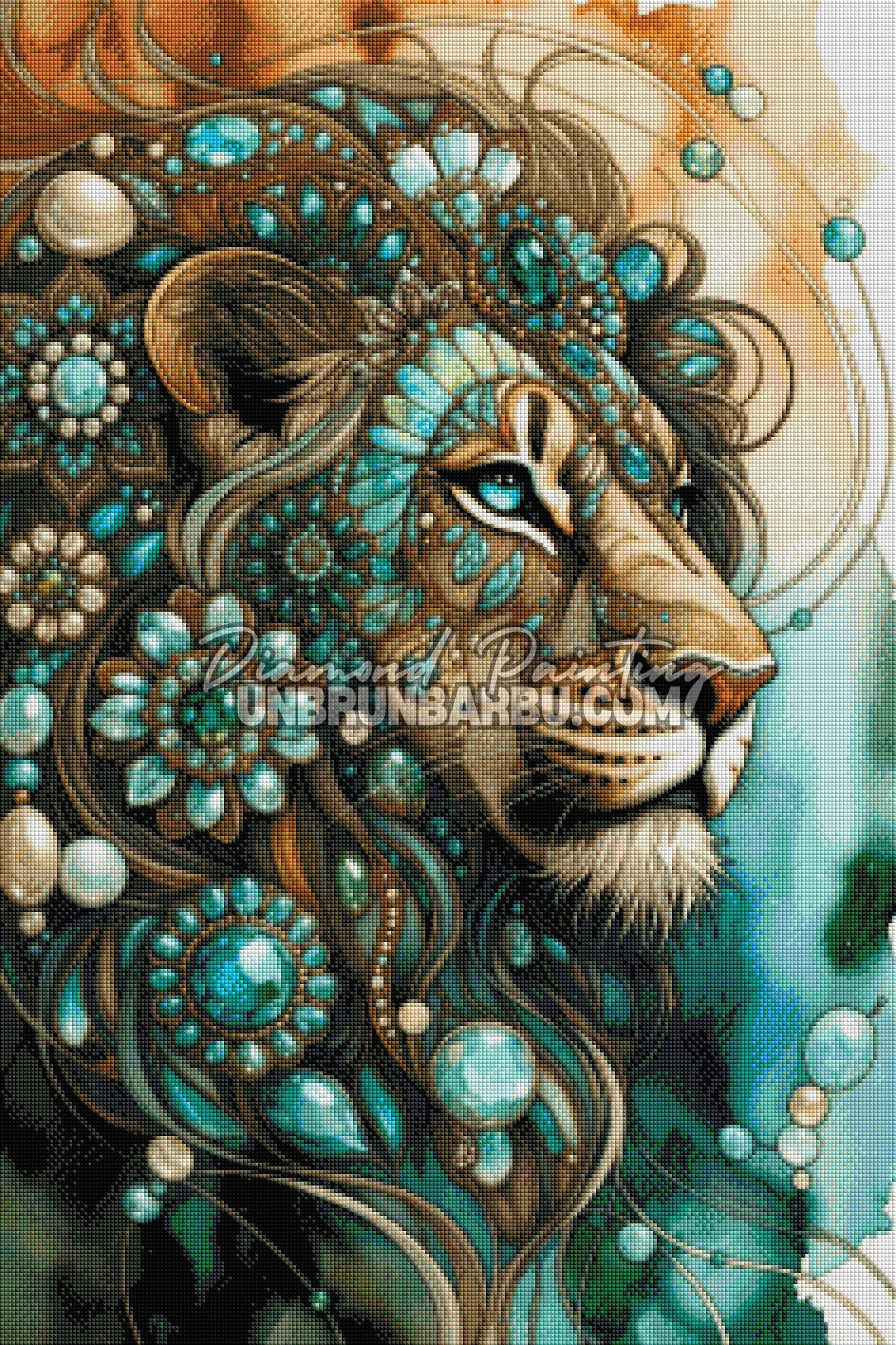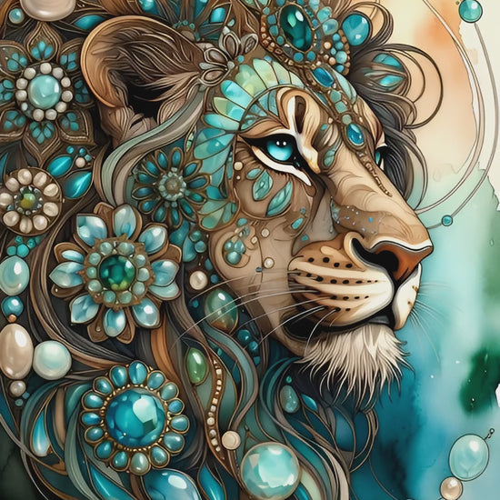 Diamond Painting - Lion aux Joyaux Turquoise (60cm x 90cm)