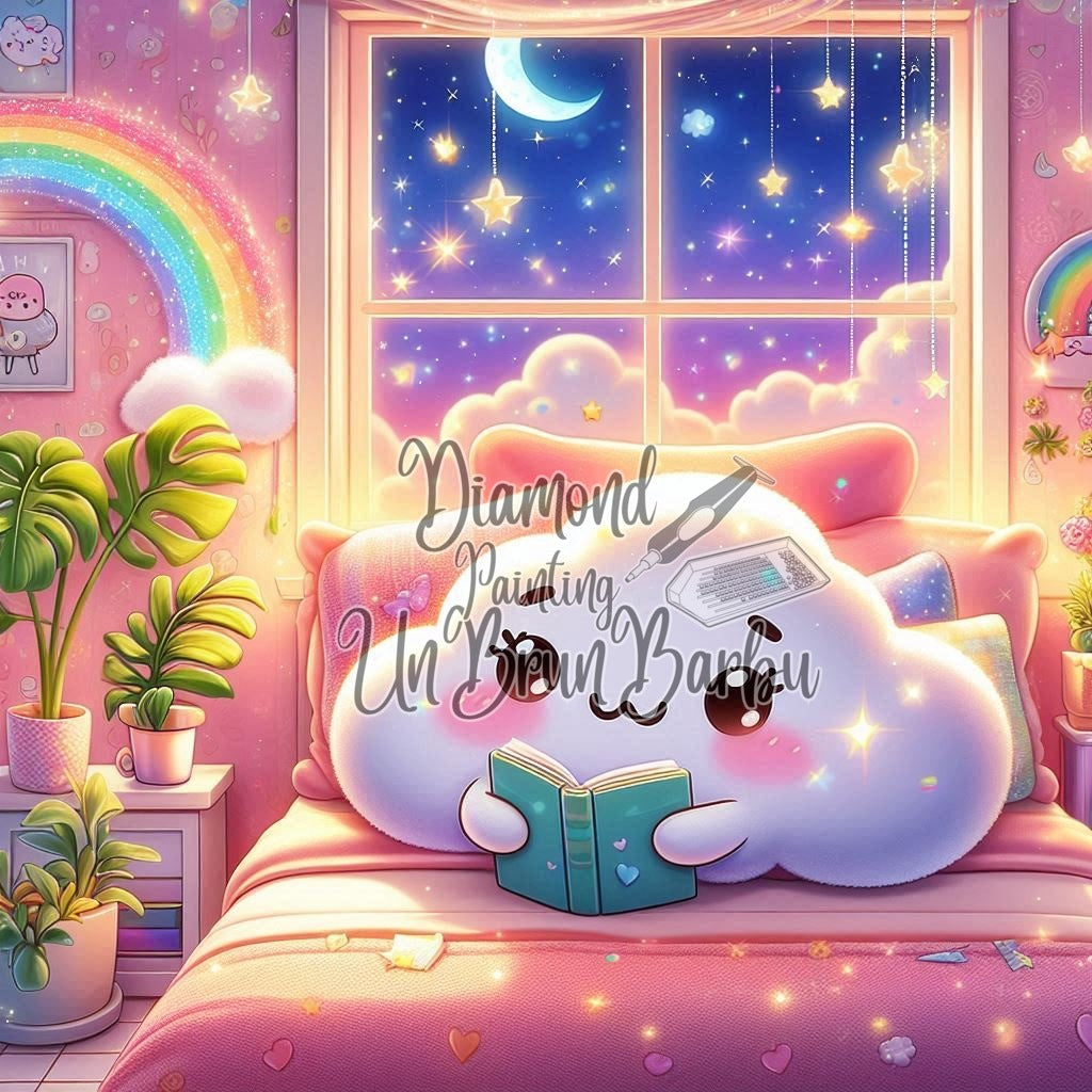 Chaque soir, lorsque la lune bleutée s’accroche au ciel et que les étoiles dansent derrière la fenêtre, un petit nuage tout doux s’installe dans son lit rose. Il ouvre toujours le même livre : un recueil de contes arc-en-ciel.