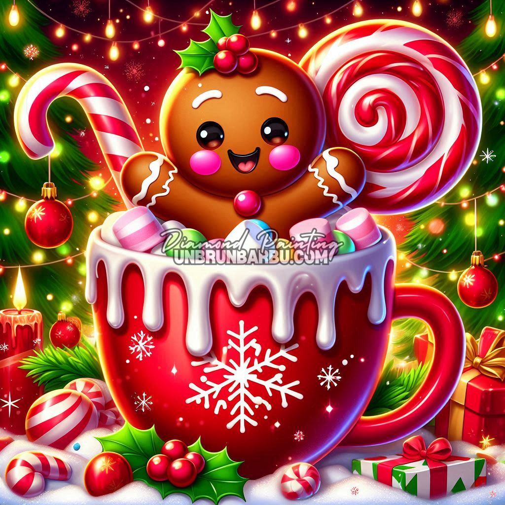Lovée dans une tasse aux flocons de neige, la petite figurine de pain d’épices prend vie à la tombée du soir.