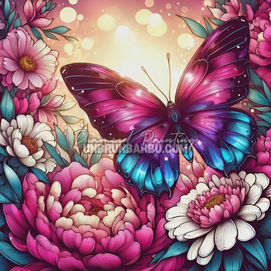 Diamond Painting - Papillon Magique sur Pivoines (70cm x 70cm)
