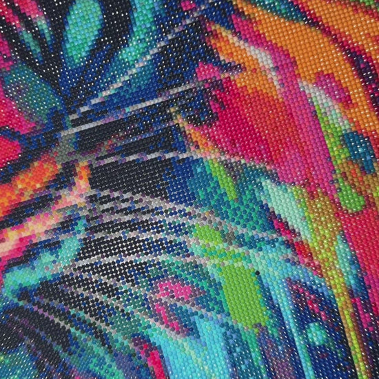 Toile douce 100% Coton avec bord cranté. Colle coulée sans bord. Protection transparente. DMC claire, lisible et ‘layout’ net. Diamants résine avec une qualité et une gamme de couleur incroyable (Ab, Pailleté, Métallique ...). Préparé en sachet zip. Feuille de route et DMC autocollante. Tool kit de base pince, stylet, colle, barquette.